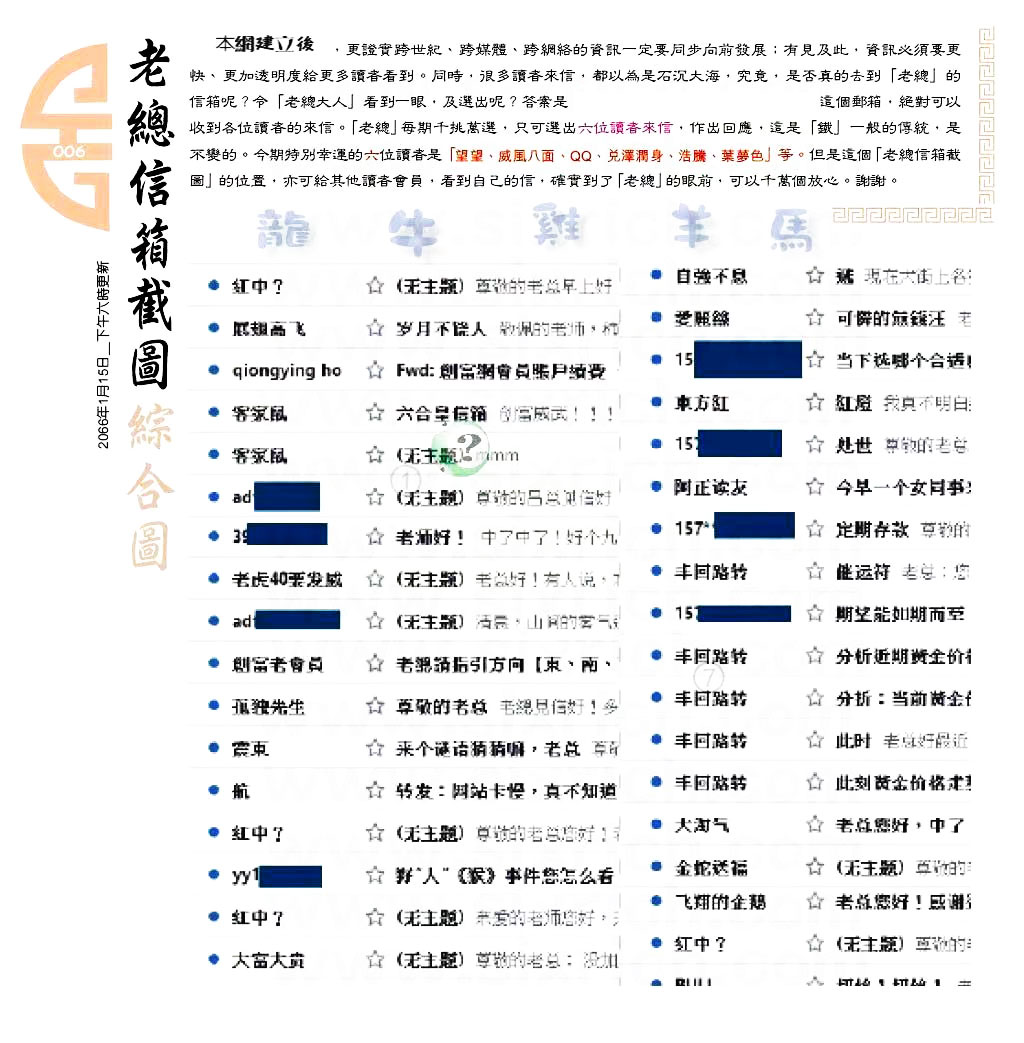 006期:六合皇金句/老总论码/萧公子/林大师/五行夺码/老总信箱截图