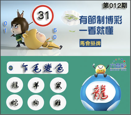 012期正版彩图挂:31 爆:龙 挂牌成语:乍毛变色 挂牌出肖:龙羊鼠蛇狗鸡