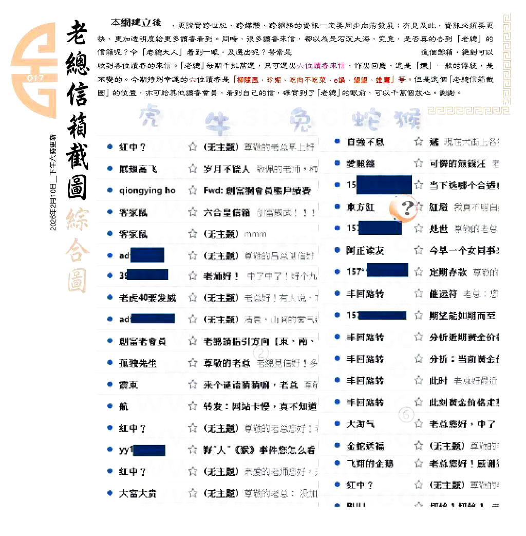 017期:六合皇金句/老总论码/萧公子/林大师/五行夺码/老总信箱截图