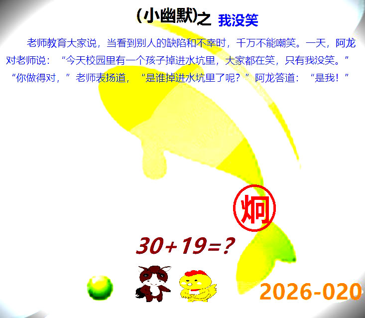 020期:幽默猜测玄机+30码期期中